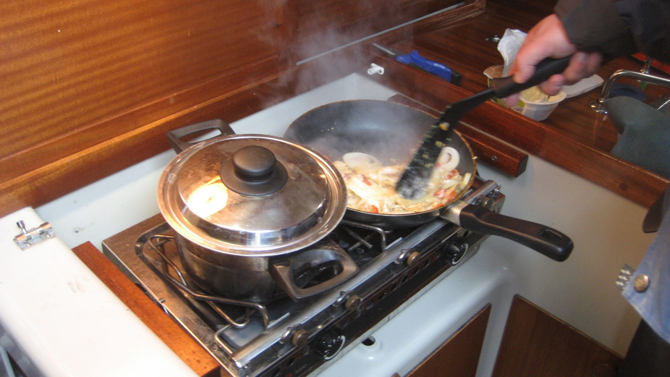 Toinen todennäköinen vaaranpaikka on veneen pentteri. Nestekaasu- tai spriikäyttöisillä liesillä ruoka tehdään yleensä avotulella. Pentterit ovat usein ahtaita ja palokuormaa on merkittävästi lieden välittömässä läheisyydessä. Joskus spriiliekki voi olla niin heikosti näkyvä, että se unohtuu inhimillisen erehdyksen seurauksena palamaan. Sellaisiakin tapauksia tunnetaan, missä tämän seurauksena liedelle on epähuomiossa asetettu jotain palavaa materiaalia.